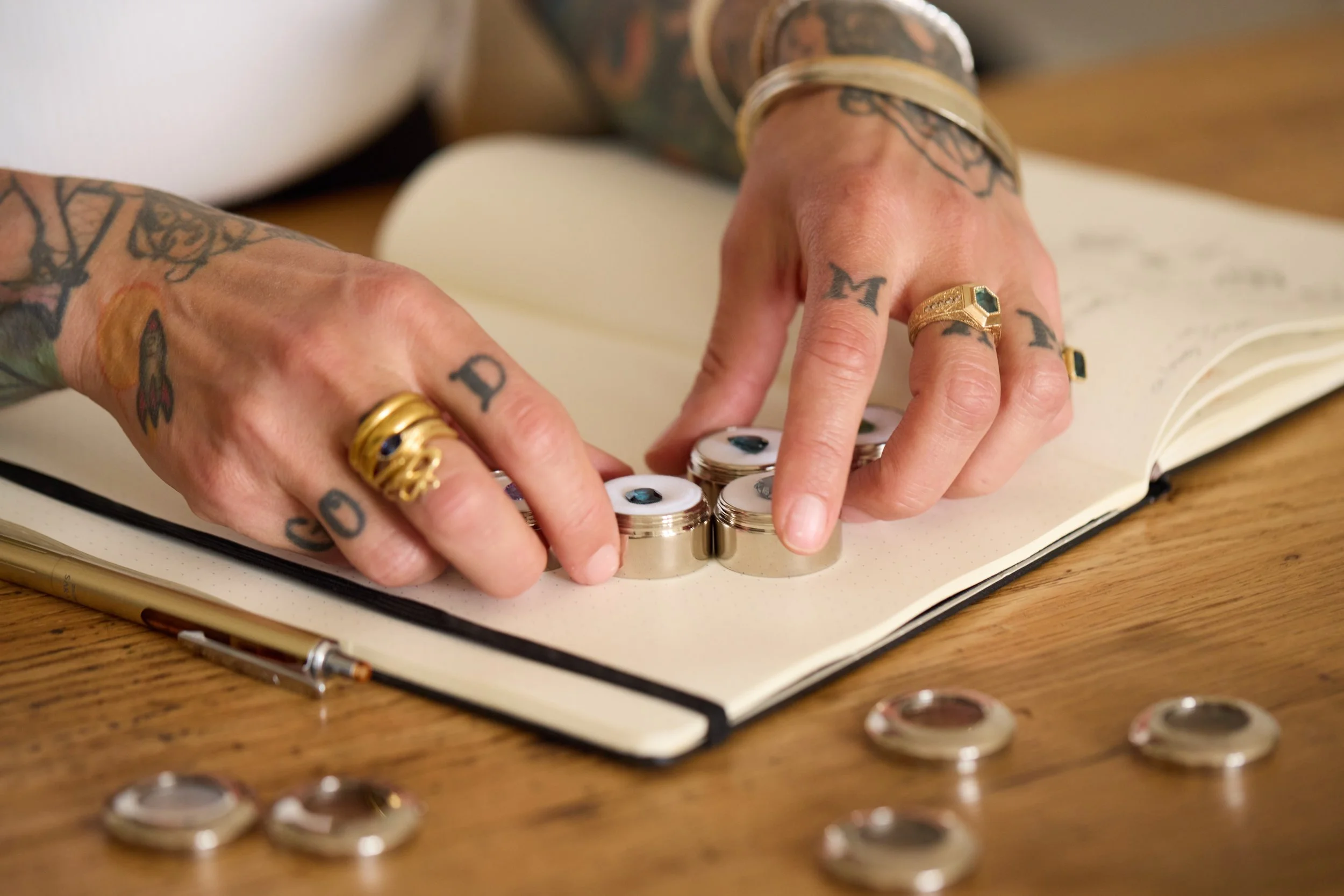 When we say that pieces are HAND MADE, we literally mean that every piece is carved or fabricated by hand, polished by hand, diamonds and gemstones are set by hand, and engraved by hand using teeny tiny tools and skills honed over decades. This process can take hours upon hours and gives a beautiful quality to the work that can be lost with machined techniques. That being said, we also use CAD to render SOME of our more TECHNICALLY complicated works. We use different processes to achieve different results and fully disclose our methods per piece.